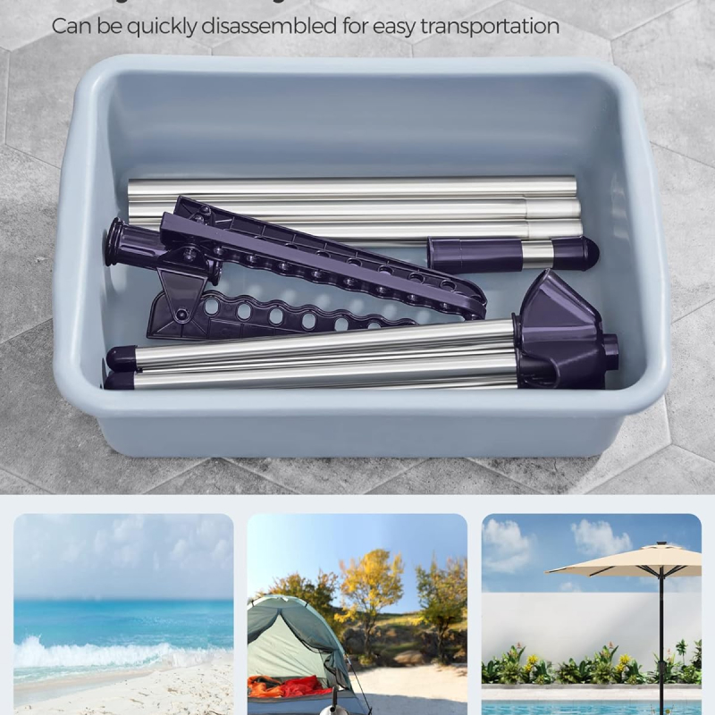 [Stable and Solid] The main pole and legs are made of stainless steel for both rust resistance and sturdiness while the 4 legs offer more stability compared with those with 3 legs