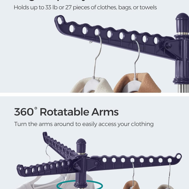 [360° Rotatable Arms] Easily spread the clothes on the 3 arms for air drying. What’s even better is that the arms can rotate 360°, allowing you to turn the arm on the other side around for quickly hanging or removing the clothing