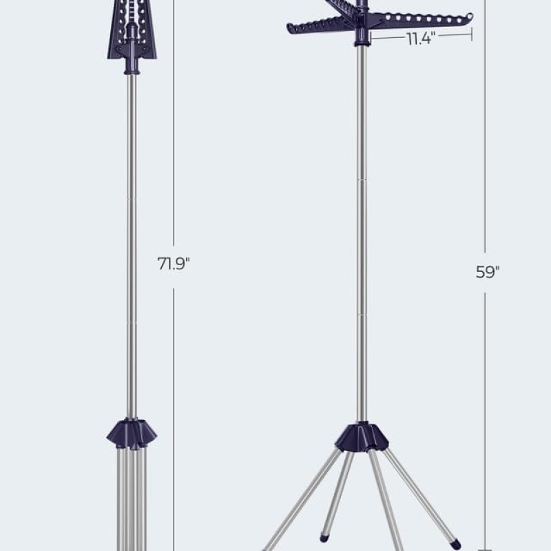 [Foldable & Space-Saving] Standing at 25.6”D x 25.6”W x 59”H during use, this clothes drying rack takes up little space, perfect for small spaces. Fold the arms and legs into a small size of 2.2”D x 2.2”W x 71.9”H, it will stay out of the way after use