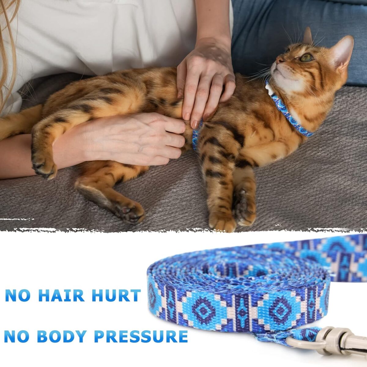 SOFT & COMFORTABLE – Every straps is woven from many tight cords, firm and flat. The smooth surface allows cat harness escape proof to NOT hurt pet’s hair and NOT put too much pressure on your pet’s neck and chest. Also you don’t have to worry about the heat dissipation troubles at all because of the small area coverage.